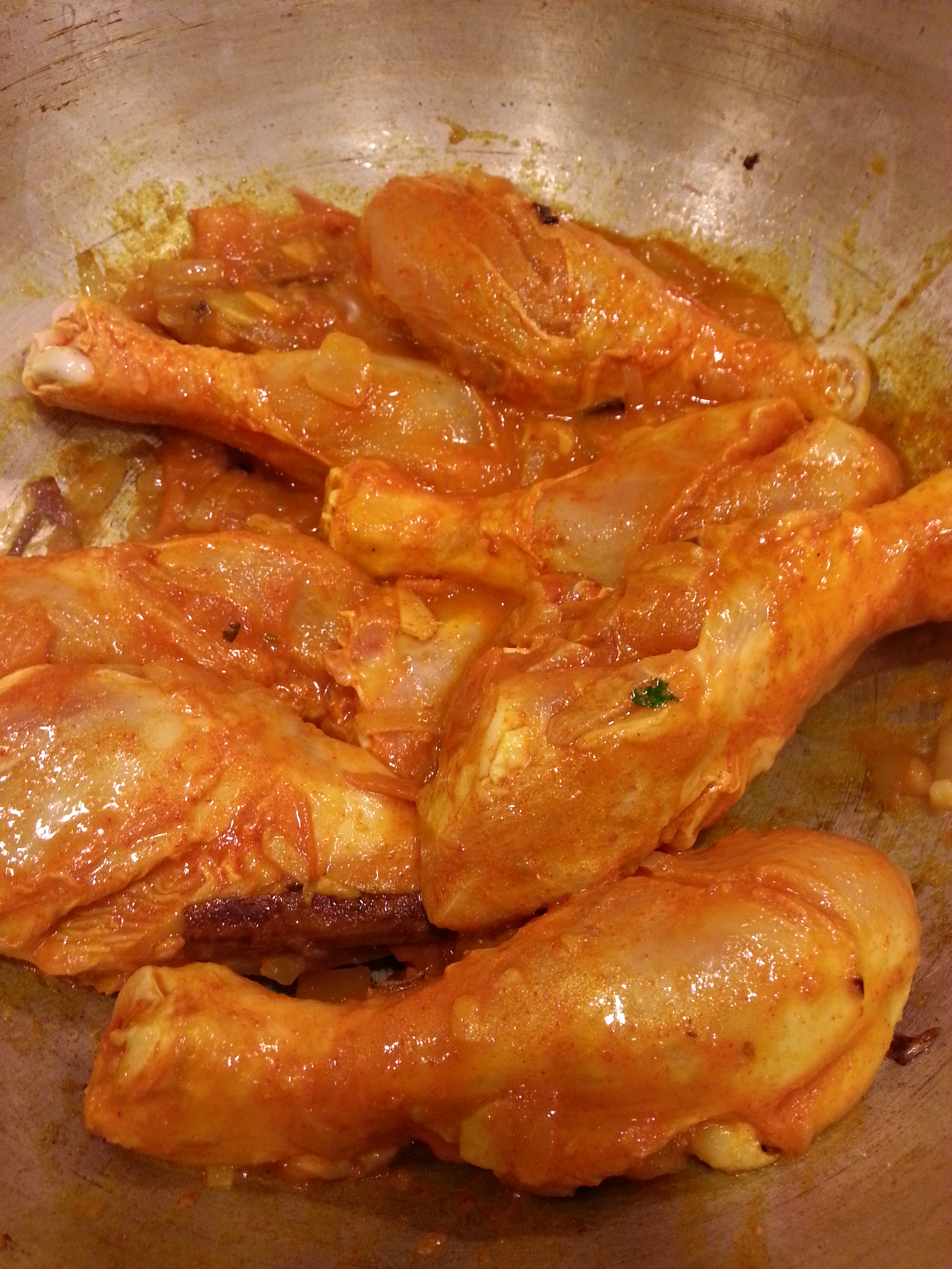 4. Add the chicken, mix well, cover and cook under high heat for 15 minutes, turning the chicken pieces occasionally.